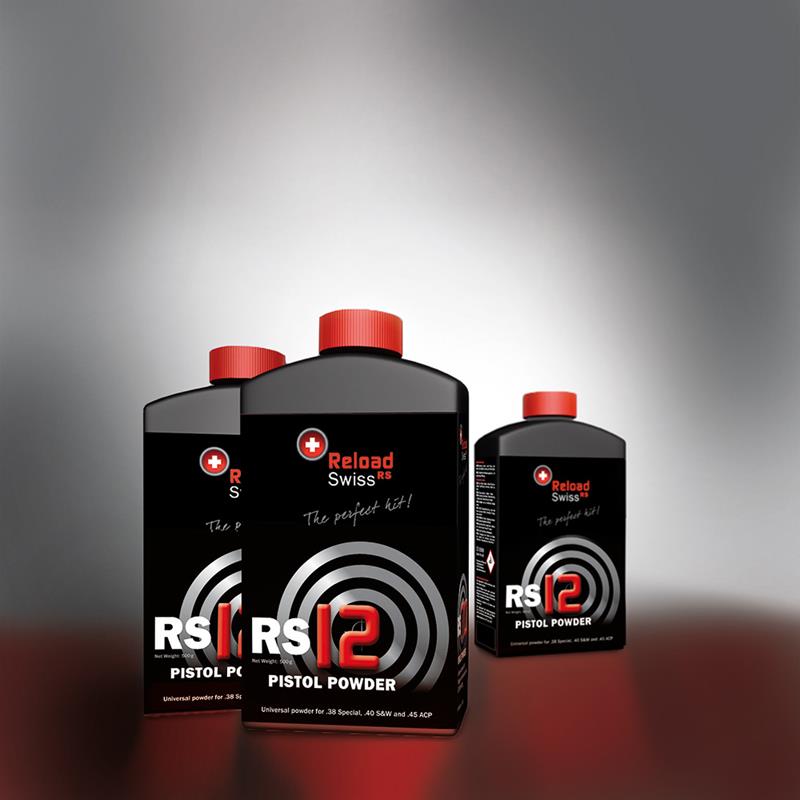 La RS12 s'ha desenvolupat de forma específica com a complement de la cartera Reload-Swiss RS. En el moment del llançament comercial, es tracta de la seva pólvora més ràpida. És adequada per a molts calibres de pistoles i de revòlvers més petits. Per a les aplicacions que, en combinació amb el RS20, no produeixen un resultat satisfactori pel que fa a les restes no cremats.